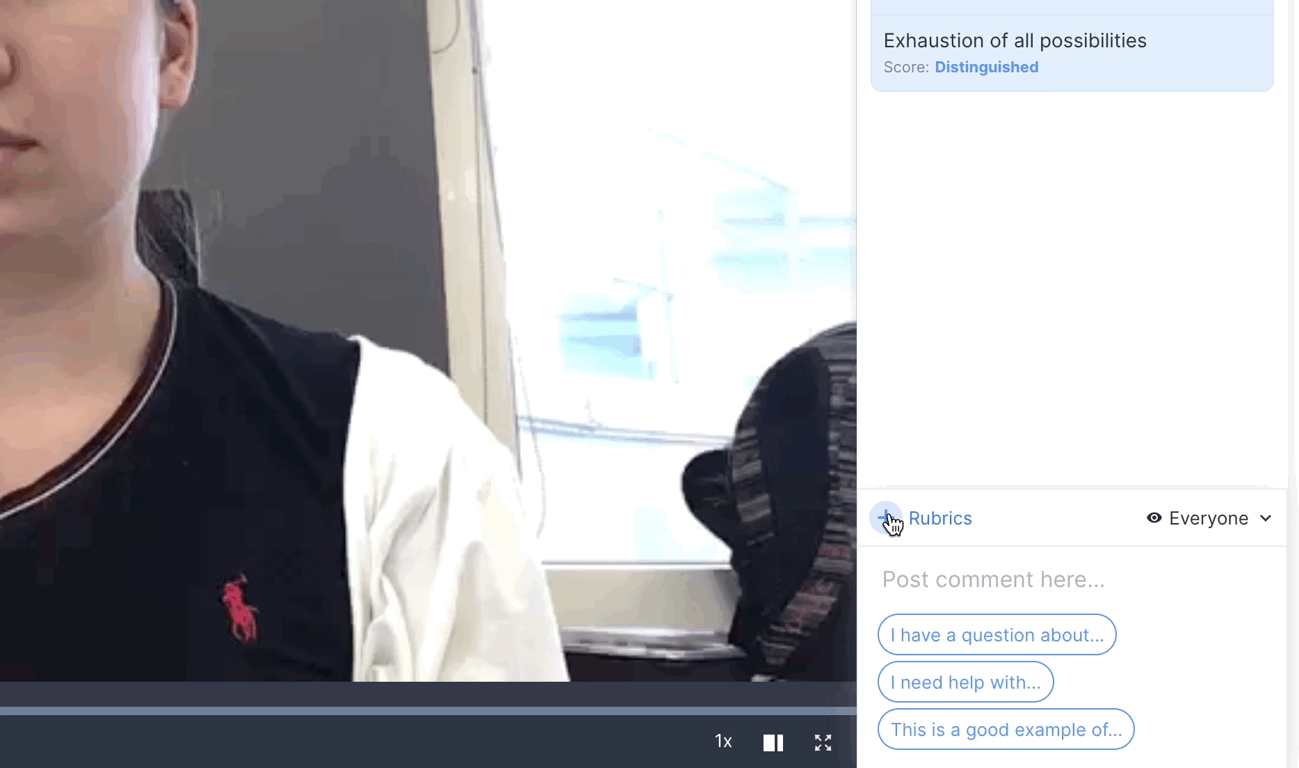 - When using Rubrics on someone else's video, the default visibility will be set to "Owner" so only the Owner and you can see those comments and standards/scores.